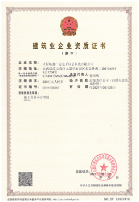 公司通過了ISO9001質量管理體系、ISO14001環境管理體系、ISO45001職業健康安全管理體系認證;擁有CMMI3、ITSS三級、電子與智能化工程專業承包貳級、施工勞務不分等級等資質;先后獲得軟件著作權27項,被授予高新技術企業(連續兩次)“雙創企業”“專精特新”中小企業、2022年太原市中小微誠信企業、山西省IT服務十佳企業等榮譽,連續六年被評為“科技型中小企業。公司與華為、紫光、亞信、迪普、宇視科技、長圓深瑞、南瑞科技、華立、四方繼保、科東、啟明星辰、東方電子等知名廠商保持緊密合作關系,取得華為數通&安全認證服務伙伴、華為認證經銷商、H3C認證代理商、宇視科技認證代理商等。